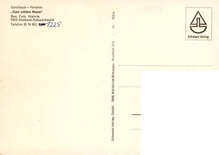 73932635 Bleibach Gasthaus Pension Zum wilden Mann Restaurant postalisch nicht gelaufen Erhaltung siehe scans [FriedD77] KatCode: 11110008316014