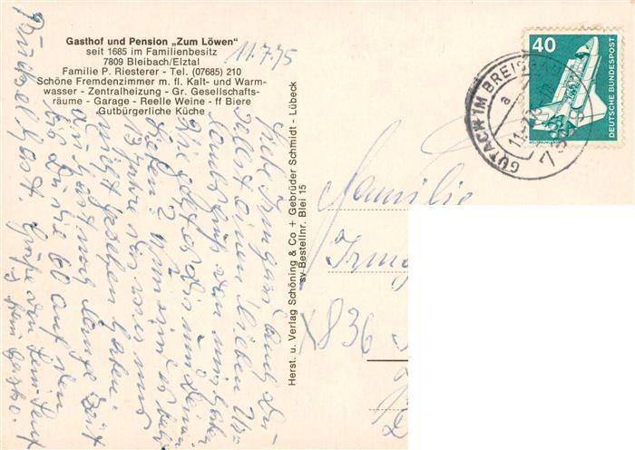 73878236 Bleibach Gutach Breisgau Gasthof Pension zum Loewen Restaurant Ortsansichten Panorama postalisch gelaufen Erhaltung siehe scans [FriedD77] alte Postkarte Frie Katcode 11110008316014