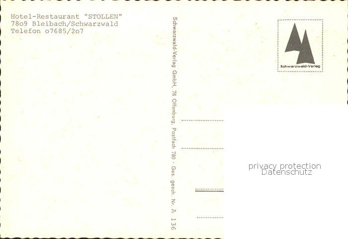 71832345 Bleibach Hotel-Restaurant Stollen postalisch nicht gelaufen Erhaltung siehe scans KatCode: 11110008316014