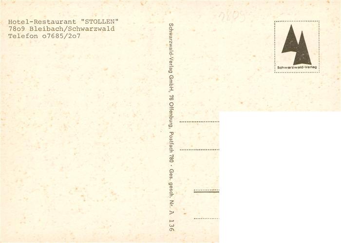 73932587 Bleibach Hotel Restaurant Stollen im Schwarzwald postalisch nicht gelaufen Erhaltung siehe scans [FriedD77] KatCode: 11110008316014