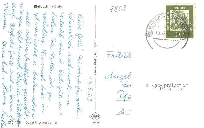 73106235 alte Postkarte Bleibach im Elztal Panorama postalisch gelaufen Erhaltung siehe scans [WerneD78] KatCode: 11110008316014