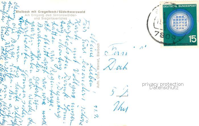 73335272 alte Postkarte Bleibach mit Gregelbach Simonswaeldertal Siegelauertal Landschaftspanorama Schwarzwald postalisch gelaufen Erhaltung siehe scans [FriedD77] KatCode: 11110008316014
