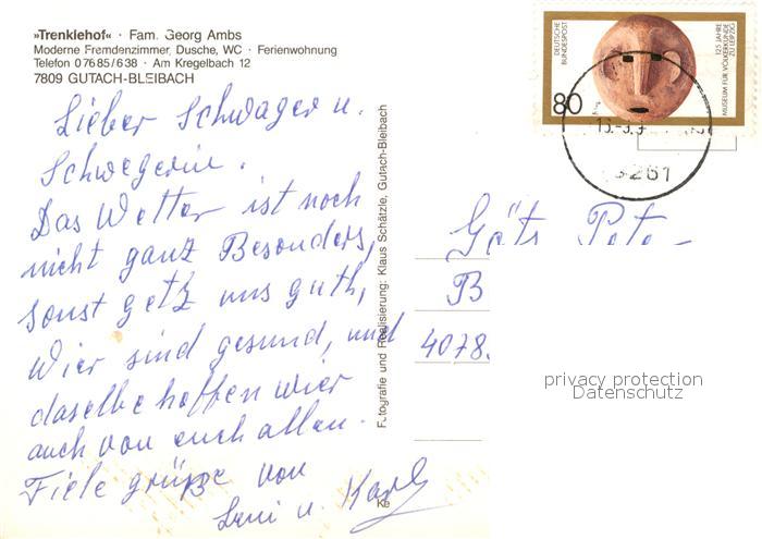 73116103 alte Postkarte Bleibach Trenklehof postalisch gelaufen Erhaltung siehe scans [KathaD81] KatCode: 11110008316014