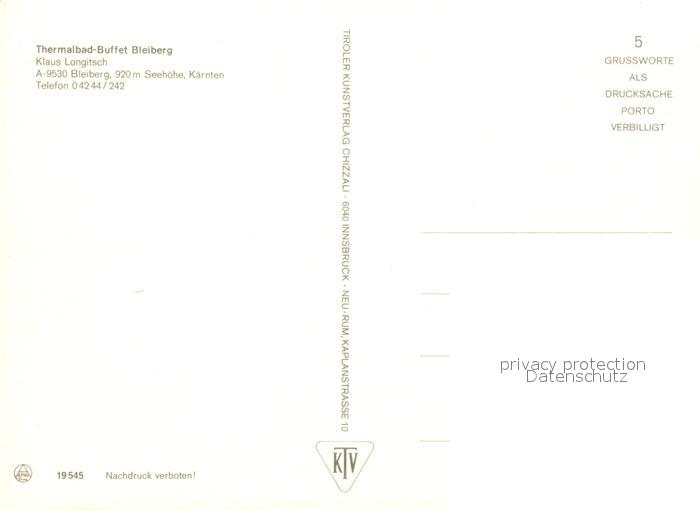 73171291 Bleiberg Thermalbad Buffet Restaurant postalisch nicht gelaufen Erhaltung siehe scans [FriedD77] KatCode: 11390211020201