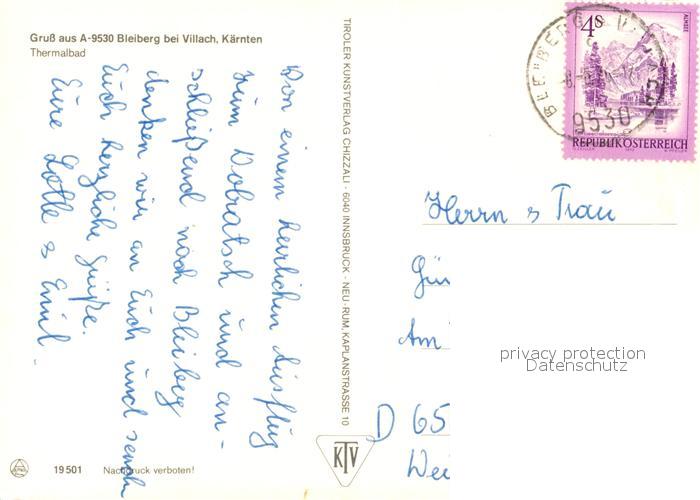73598598 alte Postkarte Bleiberg Thermalbad postalisch gelaufen Erhaltung siehe scans [PaolaD17] KatCode: 11390211020201