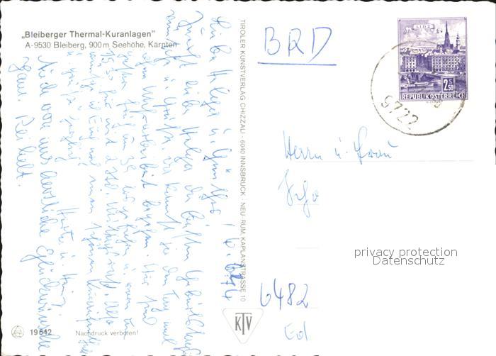 72541932 alte Postkarte Bleiberg Thermalkuranlagen postalisch gelaufen Erhaltung siehe scans [AndreD76 kv012box] KatCode: 11390211020201