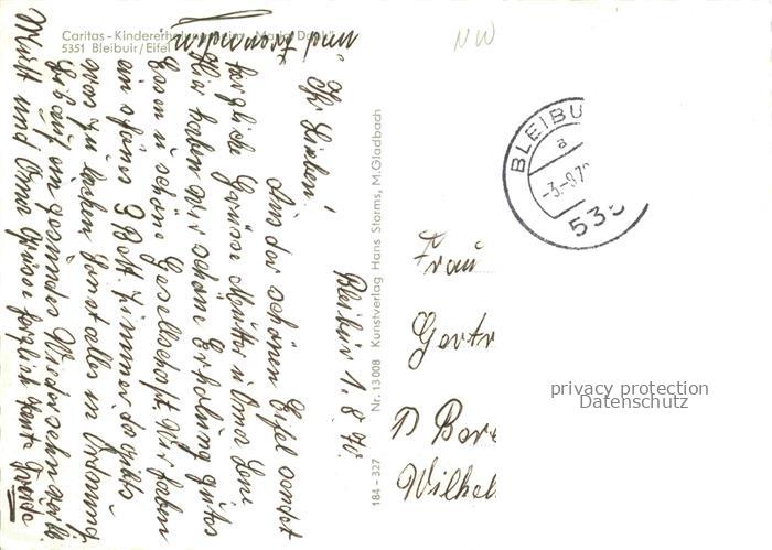 Bleibuir Mechernich Euskirchen NRW Caritas Kindererholungsheim Maria postalisch gelaufen Erhaltung siehe scans [IrynaD87] alte Postkarte Iryn Katcode 11110005366028