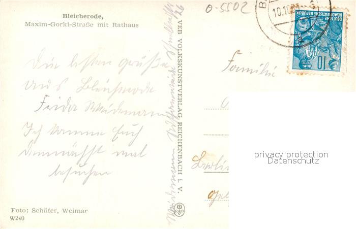 43345513 alte Postkarte Bleicherode Maxim Gorki Strasse mit Rathaus postalisch gelaufen Erhaltung siehe scans [WerneD78] KatCode: 11110016062002