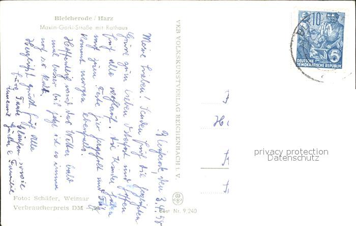 72130398 alte Postkarte Bleicherode Maxim Gorki Strasse mit Rathaus postalisch gelaufen Erhaltung siehe scans KatCode: 11110016062002