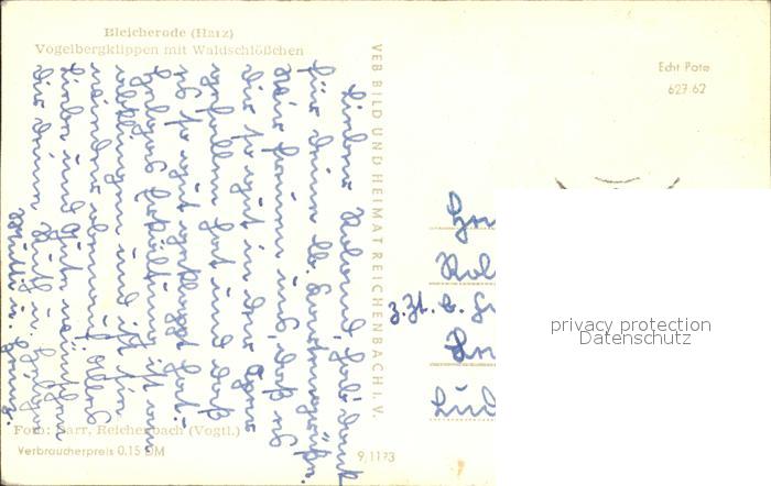 72062844 Bleicherode Vogelbergklippen mit Waldschloesschen postalisch nicht gelaufen Erhaltung siehe scans Alte Ansichtskarte Postkarte Matt Katcode 11110016062002