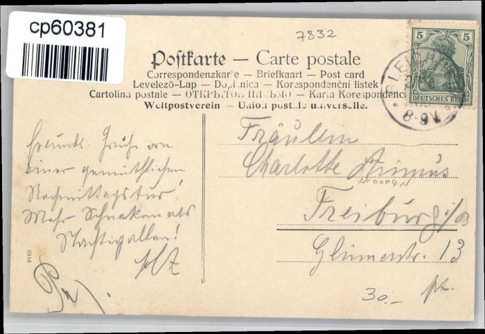 70784520 alte Postkarte Bleichheim [Stempelabschlag]Bad Kirnhalde postalisch gelaufen KatCode: 11110008316017