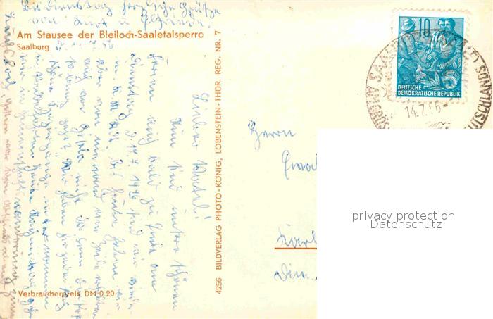72698614 alte Postkarte Bleilochtalsperre Am Stausee Saalburg postalisch gelaufen Erhaltung siehe scans [LiesaD40] KatCode: 11110016075098