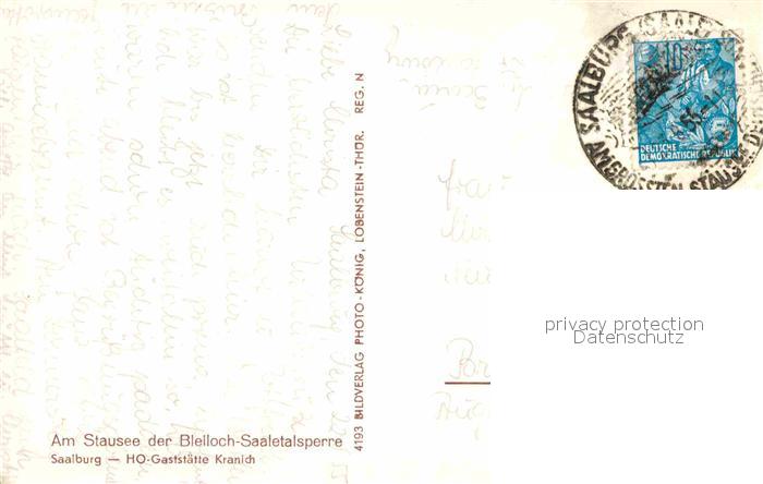 72827306 alte Postkarte Bleilochtalsperre Am Stausee Saaletalsperre postalisch gelaufen Erhaltung siehe scans [LiesaD40] KatCode: 11110016075098