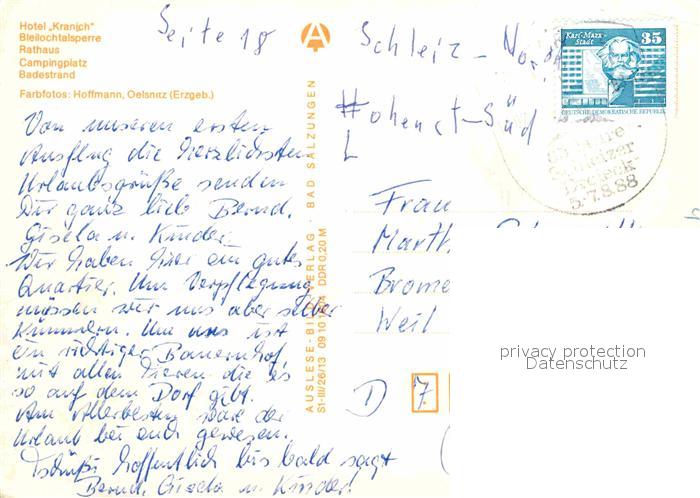 72861030 alte Postkarte Bleilochtalsperre Hotel Kranich Rathaus Badestrand Campingplatz postalisch gelaufen Erhaltung siehe scans [AndreD76] KatCode: 11110016075098