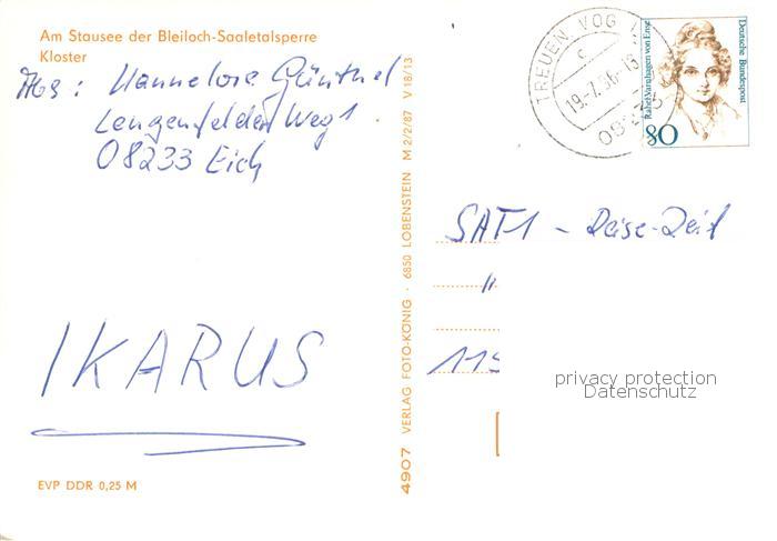 73750853 alte Postkarte Bleilochtalsperre Panorama Kloster postalisch gelaufen Erhaltung siehe scans [WerneD78] KatCode: 11110016075098