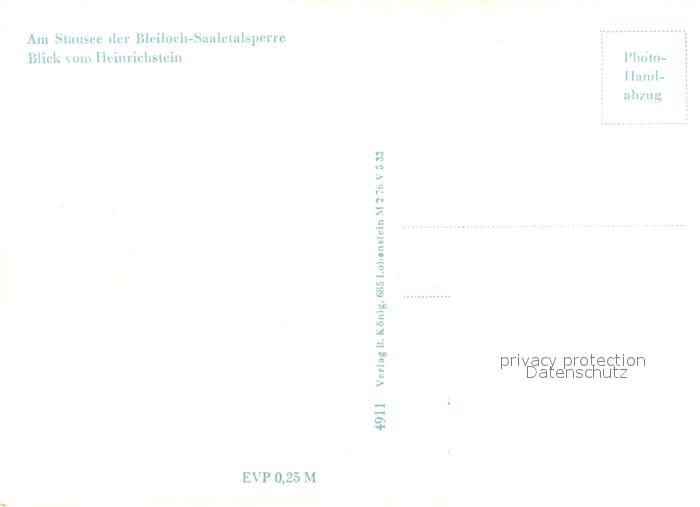 73099941 Bleilochtalsperre Stausee Blick vom Heinrichstein postalisch nicht gelaufen Erhaltung siehe scans [KathaD81] KatCode: 11110016075098