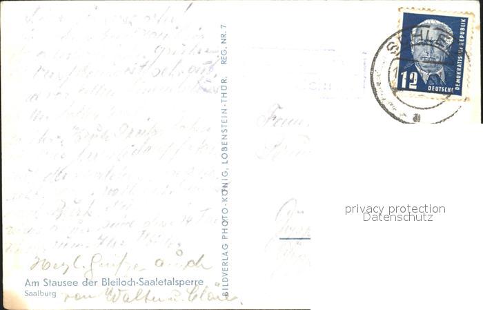 72377020 alte Postkarte Bleilochtalsperre Stausee Saalburg postalisch gelaufen Erhaltung siehe scans KatCode: 11110016075098