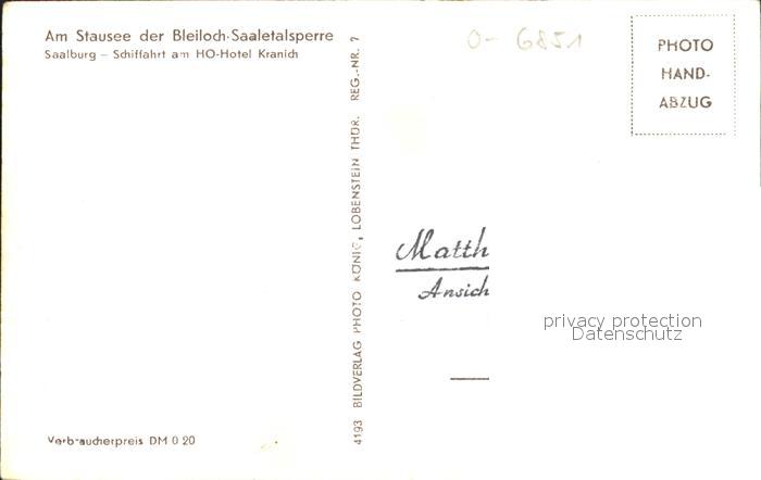 71931383 Bleilochtalsperre Stausee Saalburg Schifffahrt HO Hotel Kranich postalisch nicht gelaufen Erhaltung siehe scans KatCode: 11110016075098