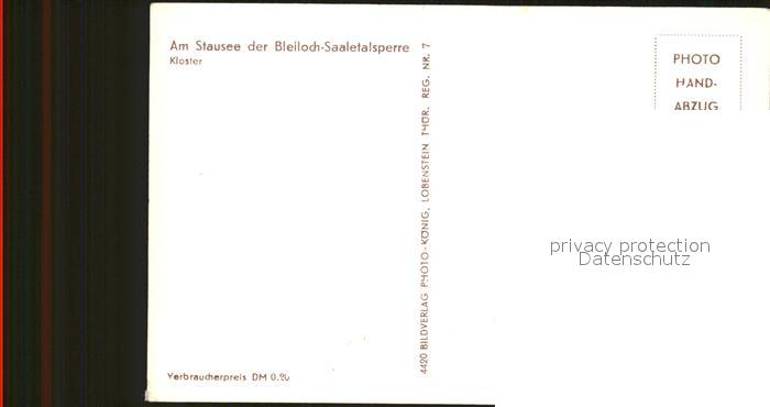 72081406 Bleilochtalsperre Stausee Saaletalsperre Kloster Handabzug postalisch nicht gelaufen Erhaltung siehe scans KatCode: 11110016075098