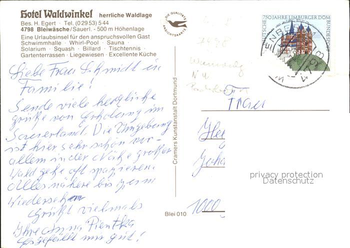 72225413 alte Postkarte Bleiwaesche Hotel Waldwinkel postalisch gelaufen Erhaltung siehe scans KatCode: 11110005774040