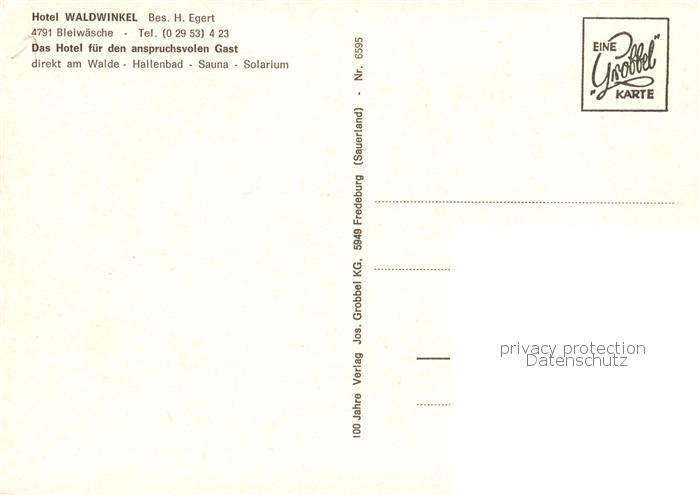 73866446 Bleiwaesche Hotel Waldwinkel postalisch nicht gelaufen Erhaltung siehe scans [WerneD78] KatCode: 11110005774040