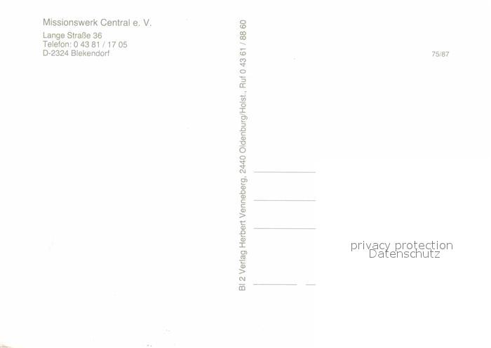 72860144 Blekendorf Missionswerk Central eV Strand Landkarte postalisch nicht gelaufen Erhaltung siehe scans [FriedD77] KatCode: 11110001057007