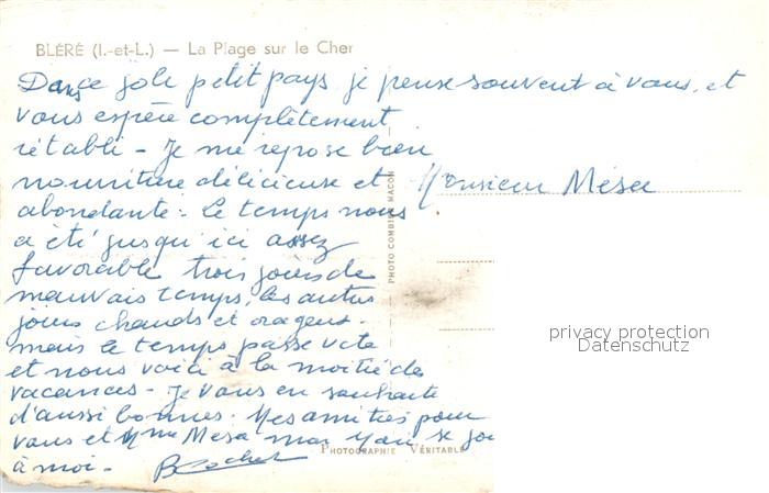 13499129 Blere La Plage sur Cher postalisch nicht gelaufen Erhaltung siehe scans [WerneD78] KatCode: 11170037237027