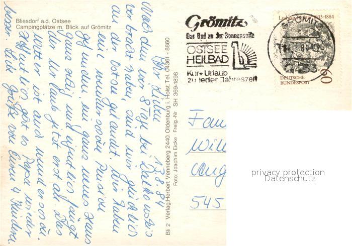 73636614 alte Postkarte Bliesdorf Schashagen Campingplaetze mit Blick auf Groemitz Fliegeraufnahme postalisch gelaufen Erhaltung siehe scans [WerneD78] KatCode: 11110001055037