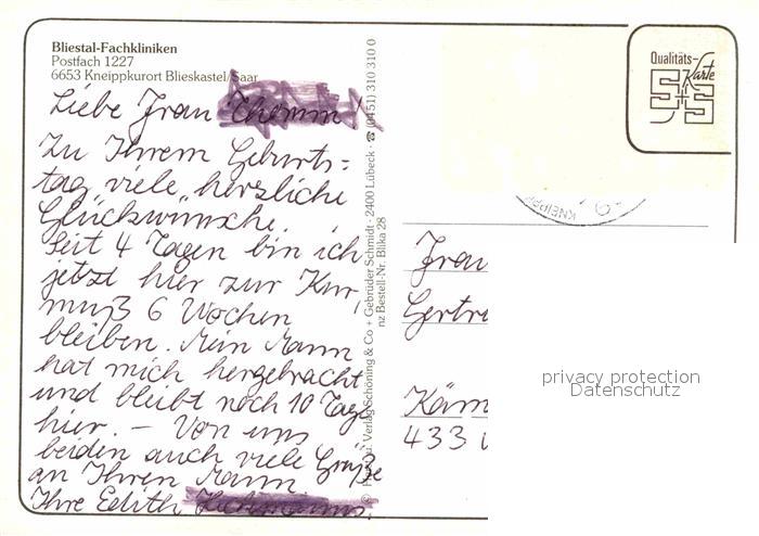 72726684 alte Postkarte Blieskastel Bliestal Fachkliniken Details postalisch gelaufen Erhaltung siehe scans [WerneD78] KatCode: 11110010045112