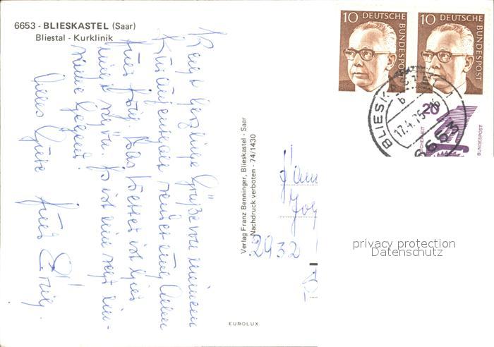 72106865 alte Postkarte Blieskastel Bliestal Kurklinik postalisch gelaufen Erhaltung siehe scans KatCode: 11110010045112