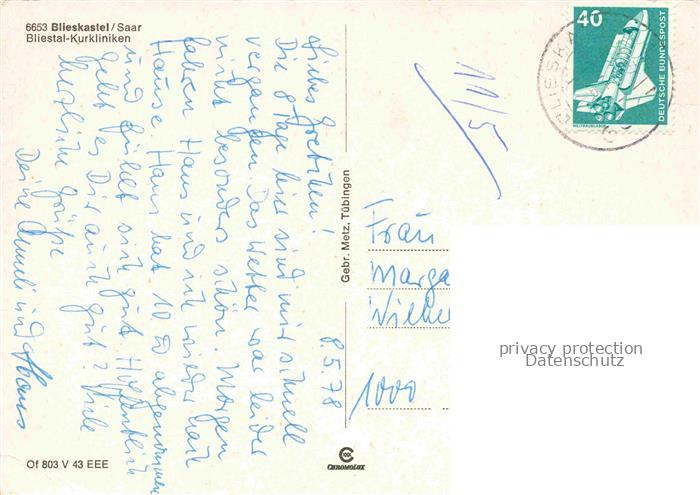 74096089 alte Postkarte Blieskastel Kurkliniken postalisch gelaufen Erhaltung siehe scans [WerneD78] KatCode: 11110010045112