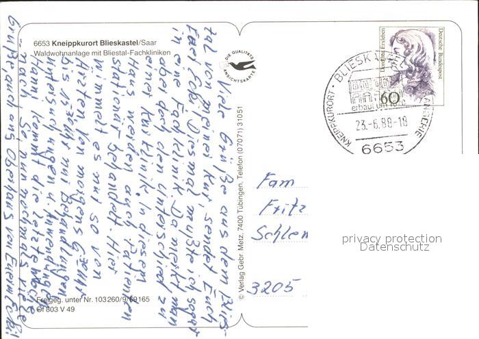 71871825 alte Postkarte Blieskastel Waldwohnanlage Bliestal-Fachkliniken Fliegeraufnahme postalisch gelaufen Erhaltung siehe scans KatCode: 11110010045112