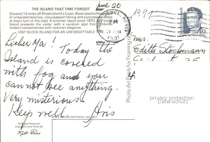 72293203 old postcard Block Island Fliegeraufnahme postalisch gelaufen Erhaltung siehe scans KatCode: 14140420000000