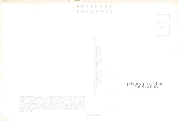 74010891 Bloemfontein RSA Southafrica The Appeal Court postalisch nicht gelaufen Erhaltung siehe scans [WerneD78] KatCode: 18460