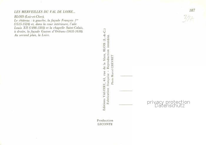 12771055 Blois 41 Le Chateau Vue aerienne postalisch nicht gelaufen Erhaltung siehe scans [WerneD78] KatCode: 11170041141018