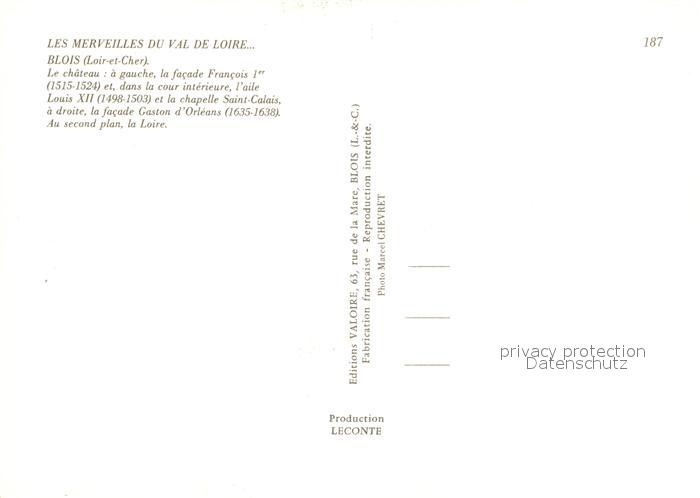 13003295 Blois 41 Les Mervelles du val de Loire Chateau postalisch nicht gelaufen Erhaltung siehe scans [KathaD81] KatCode: 11170041141018