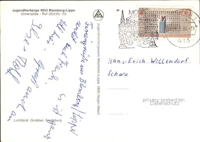 72108223 alte Postkarte Blomberg Lippe Jugendherberge Ulmenallee postalisch gelaufen Erhaltung siehe scans KatCode: 11110005766016