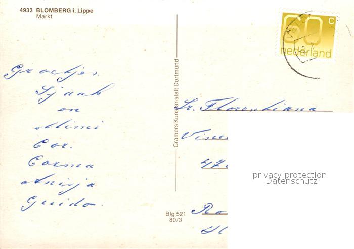 72942890 alte Postkarte Blomberg Lippe Markt Fachwerkhaus Turm postalisch gelaufen Erhaltung siehe scans [FriedD77] KatCode: 11110005766016