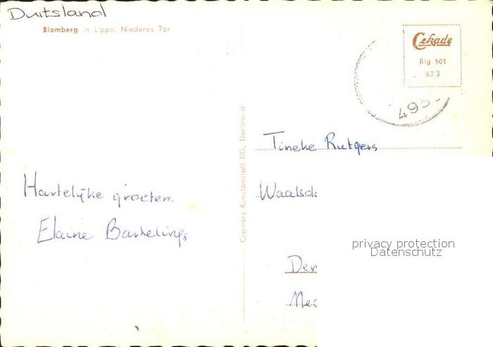72297230 alte Postkarte Blomberg Lippe Niederes Tor postalisch gelaufen Erhaltung siehe scans KatCode: 11110005766016