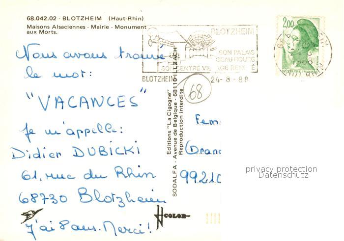 13264830 carte postale Blotzheim Maisons Alsaciennes Mairie Monument aux Morts postalisch gelaufen Erhaltung siehe scans [KathaD81] KatCode: 11170068468042