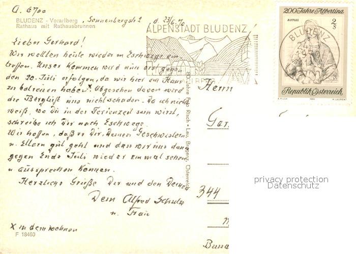 73227592 alte Postkarte Bludenz Vorarlberg Rathaus mit Rathausbrunnen postalisch gelaufen Erhaltung siehe scans [WerneD78] KatCode: 11390341080103