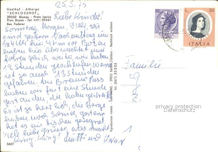 old postcard Blumau Suedtirol Gasthof Schlosshof postalisch gelaufen Erhaltung siehe scans