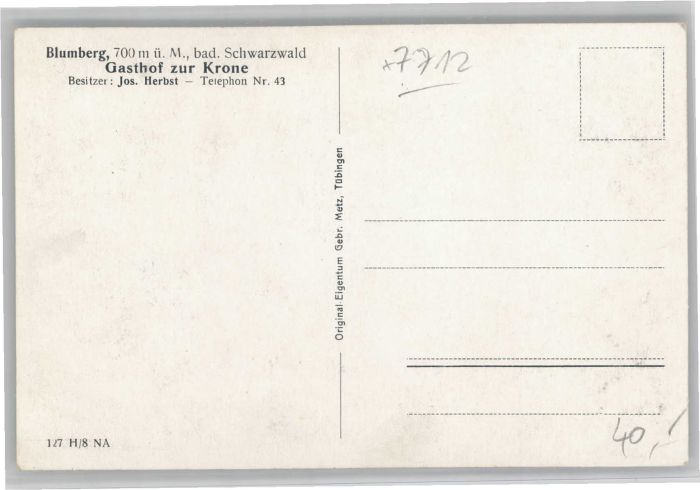 40731398 Blumberg Baden Blumberg Gasthaus zur Krone Hauptstrasse KatCode 11110008326005
