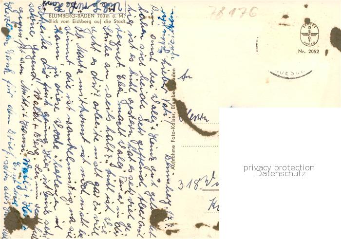 73852900 alte Postkarte Blumberg Baden Panorama postalisch gelaufen Erhaltung siehe scans [WerneD78] KatCode: 11110008326005