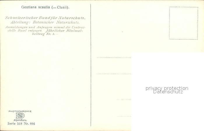 11765089 Blumen Gentiana acaulis Clusii Verlag-Photochromie Nr. 886 KatCode 22360000000100