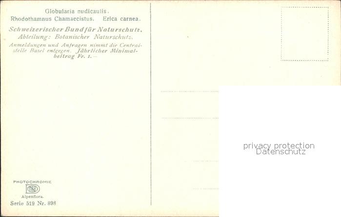 11765086 Blumen Globularia nudicaulis Erica carnea Verlag-Photochromie Nr. 898 KatCode 22360000000100