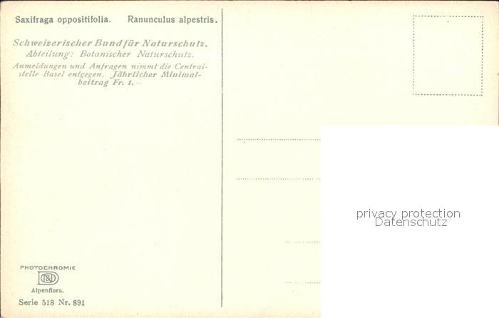 11765087 Blumen Saxifraga oppositifolia Ranunculus alpestris Verlag-Photochromie Nr. 891 KatCode 22360000000100