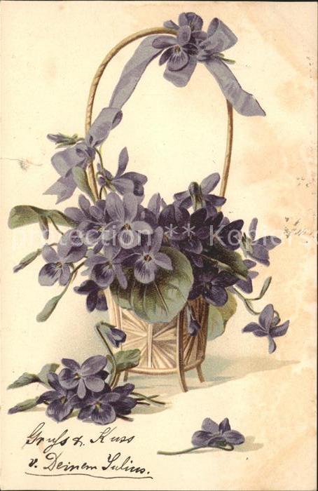Blumen Veilchen Korb Litho