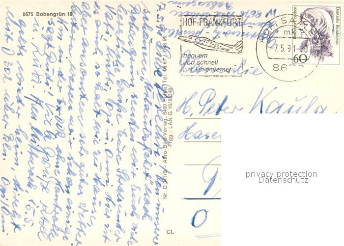73723677 alte Postkarte Bobengruen Fliegeraufnahme postalisch gelaufen Erhaltung siehe scans [WerneD78] KatCode: 11110009475112