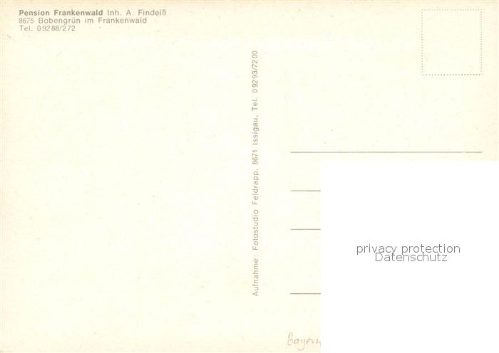 73653333 Bobengruen Pension Frankenwald postalisch nicht gelaufen Erhaltung siehe scans [WerneD78] KatCode: 11110009475112